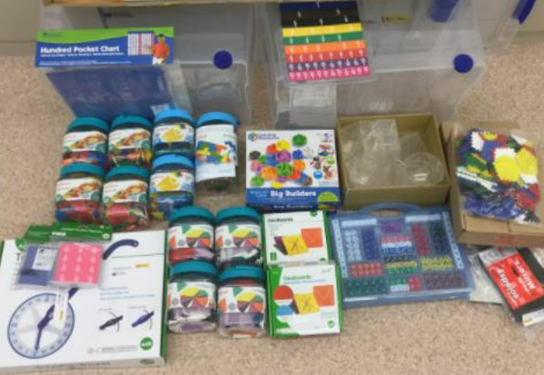 Dues caixes amb materials matemàtics del CESIRE per treballar les matemàtiques de manera manipulativa, fet tan necessari per fer el primer contacte amb conceptes de vegades força abstractes. Des dels cercles de fraccions, la graella de nombres fins a l'hodòmetre i molts més.